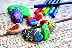 Lass deiner Kreativität freien Lauf und bemale einen Stein, den du danach mit nach Hause nehmen kannst und zum Beispiel deinen Garten, Balkon oder anderes verschönern kannst.